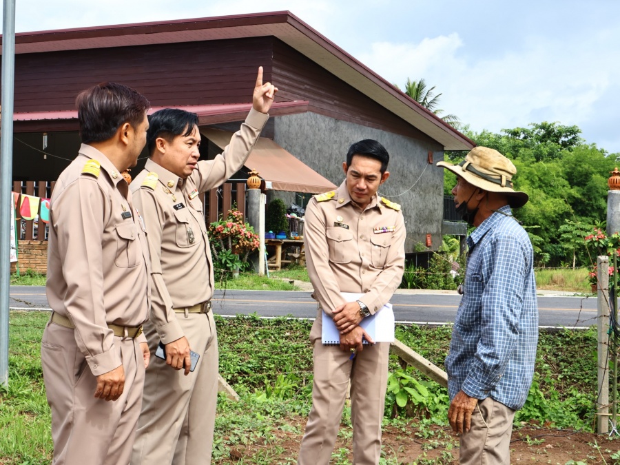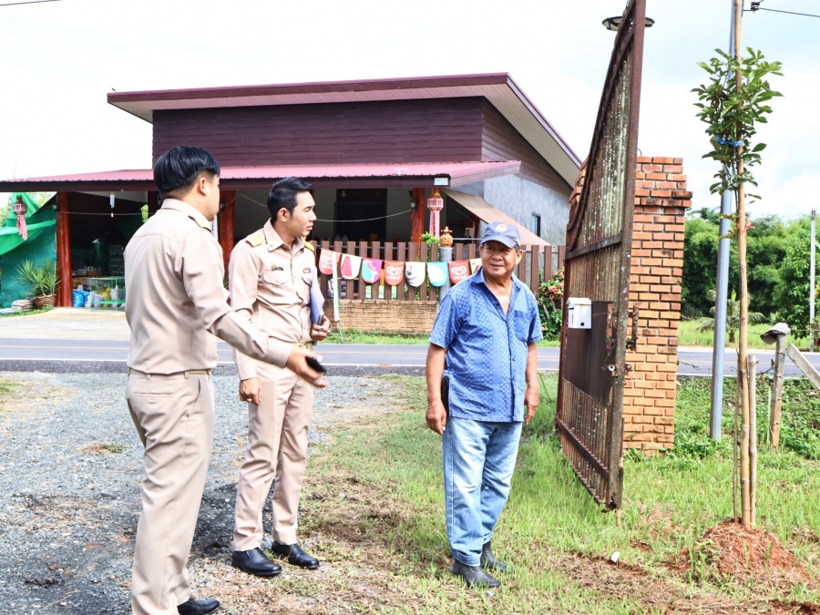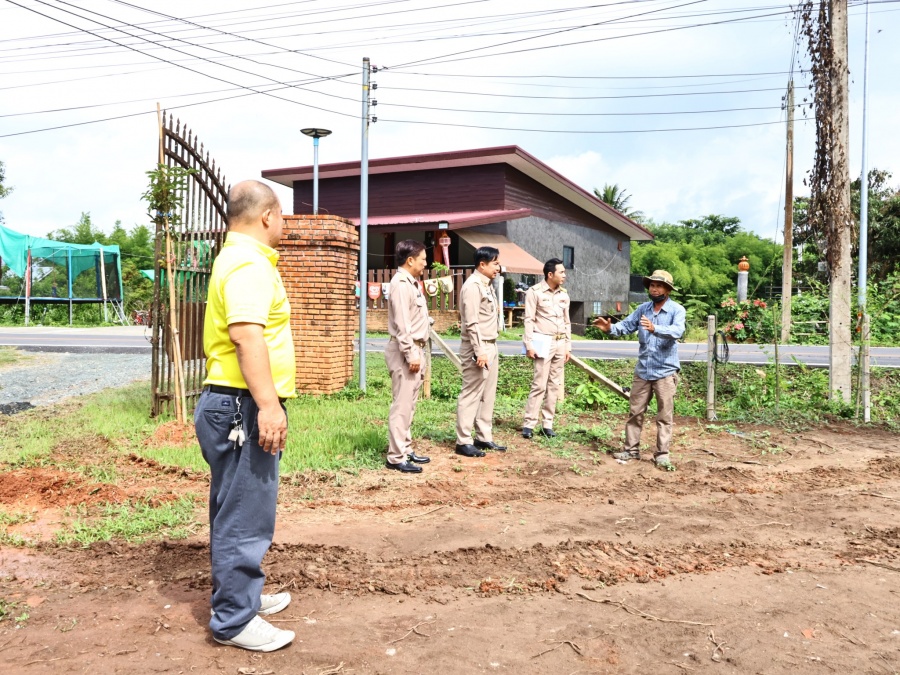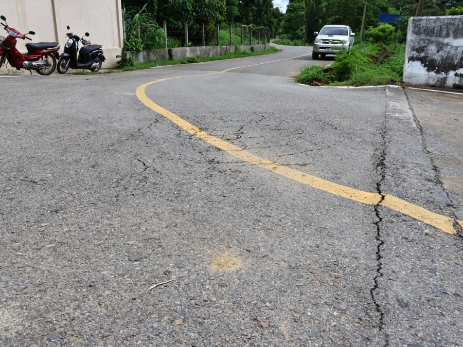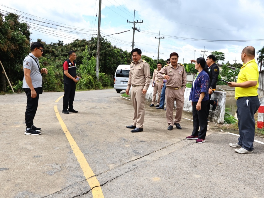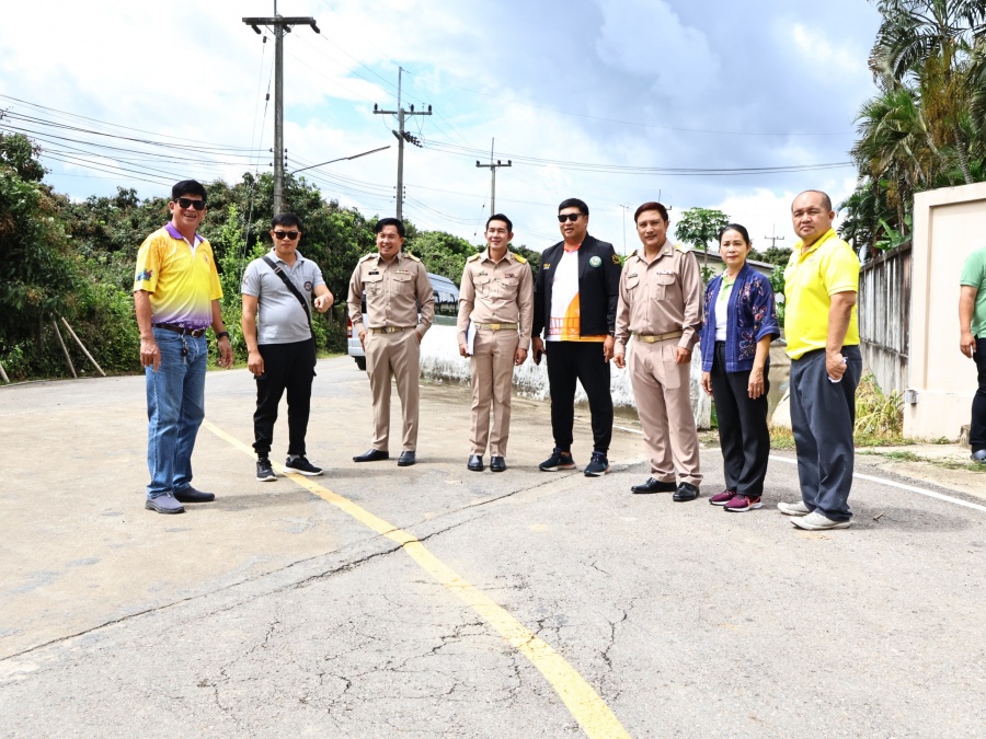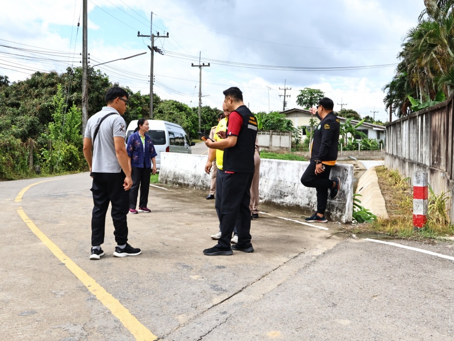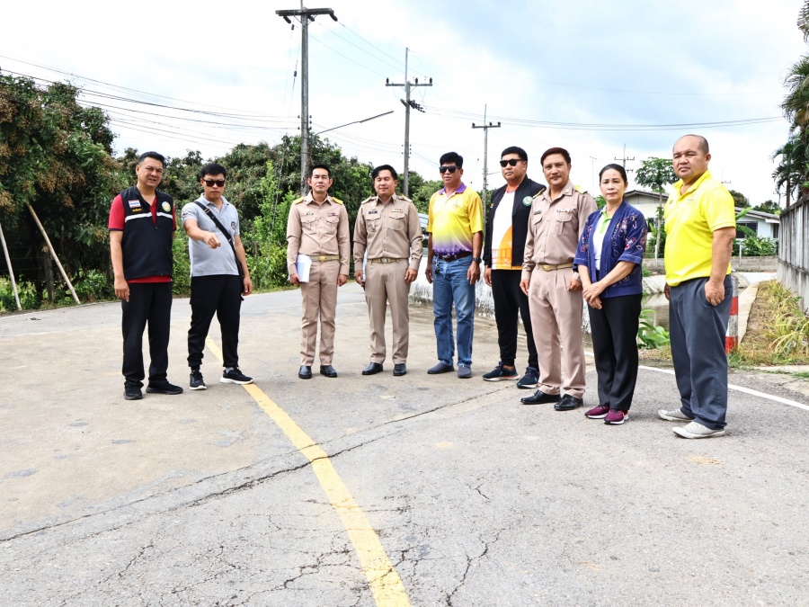 ตรวจสอบปัญหาถนนบริเวณคอสะพานที่แตกร้าวจากการใช้เส้นทางของรถบรรทุกดินที่ผ่านหมู่บ้านทุ่งป่าคาเป็นประจำ