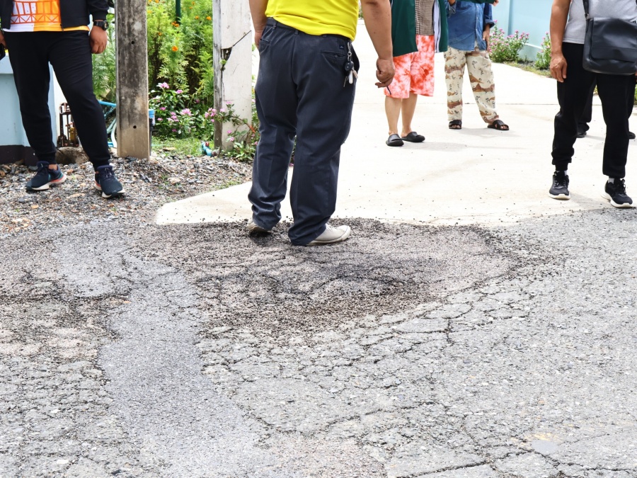 ตรวจสอบปัญหาถนนชำรุดจากการที่มีรถบรรทุกดินขนาดใหญ่สัญจรผ่านเส้นทางดังกล่าวบ่อยครั้ง จนเกิดความเสียหายสะสม