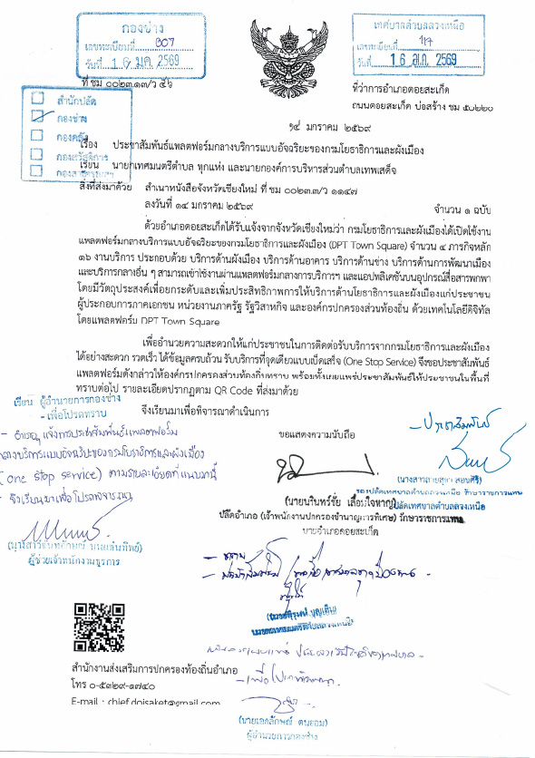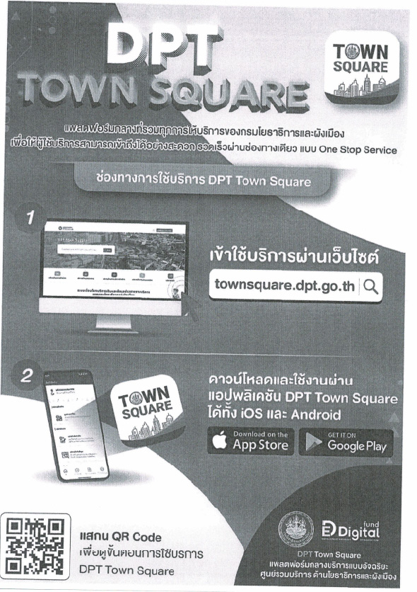 ประชาสัมพันธ์เทศบาลตำบลลวงเหนือ กรมโยธาธิการและผังเมืองได้เปิดใช้งานแพลตฟอร์มกลางบริการแบบอัจฉริยะของกรมโยธาธิการและผังเมือง (DPT Town Square)