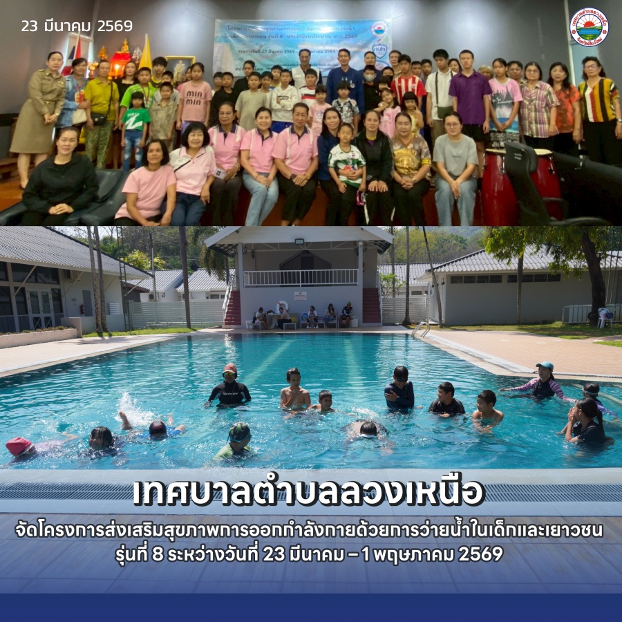 วันที่ 24 มีนาคม 2569 เทศบาลตำบลลวงเหนือ ได้จัดโครงการส่งเสริมสุขภาพการออกกำลังกายด้วยการว่ายน้ำในเด็กและเยาวชน รุ่นที่ 8 ประจำปีงบประมาณ พ.ศ. 2569 โดยมีกำหนดจัดกิจกรรมระหว่างวันที่ 23 มีนาคม – 1 พฤษภาคม 2569