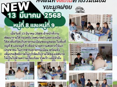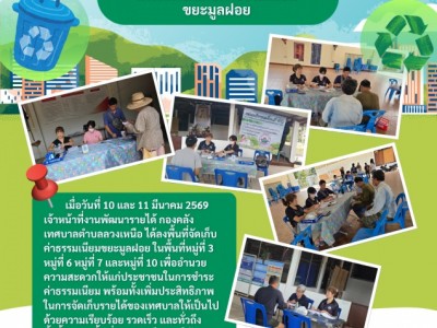 ลงพื้นที่จัดเก็บค่าธรรมเนียมขยะมูลฝอย ในพื้นที่หมู่ที่ 3 หมู่ที่ 6 หมู่ที่ 7 และหมู่ที่ 10