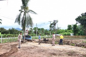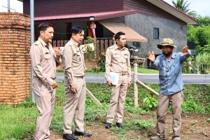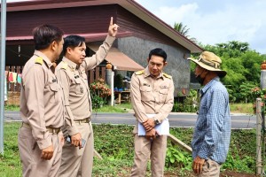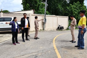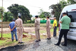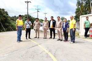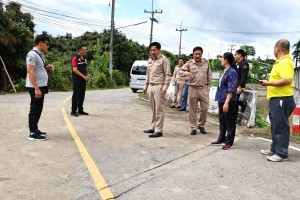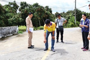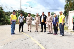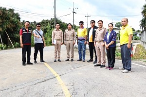 ตรวจสอบปัญหาถนนบริเวณคอสะพานที่แตกร้าวจากการใช้เส้นทางของรถบรรทุกดินที่ผ่านหมู่บ้านทุ่งป่าคาเป็นประจำ