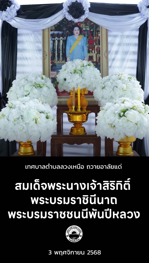 วันที่ 3 พฤศจิกายน 2568 นายพิรุฬห์ บุญเย็น นายกเทศมนตรีตำบลลวงเหนือ พร้อมด้วยคณะผู้บริหาร ประธานสภาเทศบาลฯ สมาชิกสภาเทศบาลตำบลลวงเหนือ ชมรมกำนันผู้ใหญ่ ชุดปฏิบัติการเฉพาะกิจบ้านป่าสักงาม กองพันทหารปืนใหญ่ที่ 7 กลุ่มแม่บ้านตำบลลวงเหนือ หัวหน้าส่วนราชการ และพนักงานเทศบาลตำบลลวงเหนือ ร่วมลงนามถวายความอาลัยเบื้องหน้าพระฉายาลักษณ์สมเด็จพระนางเจ้าสิริกิติ์ พระบรมราชินีนาถ พระบรมราชชนนีพันปีหลวง ด้วยสำนึกในพระมหากรุณาธิคุณอย่างหาที่สุดมิได้ ณ เทศบาลตำบลลวงเหนือ