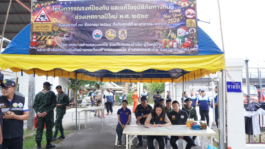 เทศบาลตำบลลวงเหนือ โดยท่านนายกเทศมนตรีตำบลลวงเหนือ ปลัดอำเภอ (ผู้แทนนายอำเภอดอยสะเก็ด) กำนัน ผู้ใหญ่บ้าน ชุดเฉพาะกิจบ้านป่าสักงาน สภ.ดอยสะเก็ด สมาชิก อปพร. ร่วมเปิดด่านชุมชนเทศบาลตำบลลวงเหนือ "โครงการรณรงค์ป้องกันและแก้ไขอุบัติภัยทางถนนช่วงเทศกาลปีใหม่ พ.ศ.2569 ณ ด้านหน้าสำนักงานเทศบาลตำบลวงเหนือ