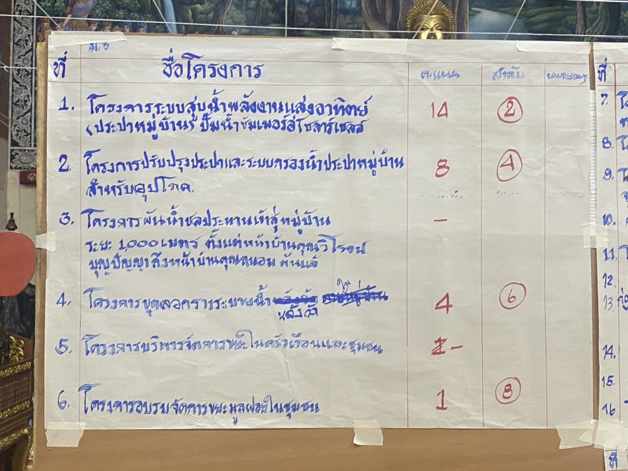 เทศบาล ได้จัดทำเวทีประชาคมหมู่บ้าน เพื่อรับทราบปัญหาความเดือดร้อนของประชาชนในพื้นที่ และเสนอโครงการปัญหาความต้องการและจัดลำดับสำคัญของโครงการตามมติที่ประชุมประชาคม