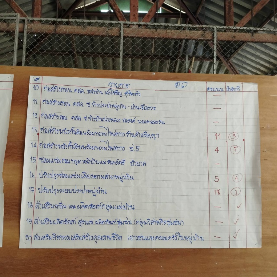หมู่บ้าน เพื่อรับทราบปัญหาความต้องการ และความเดือดร้อนของประชาชนบ้านสันทราย หมู่ที่ 6 เพื่อนำไปพิจารณาแก้ไขและให้ความช่วยเหลือ และเพื่อนำไปบรรจุเข้าแผนพัฒนาท้องถิ่นเพิ่มเติมต่อไป และแผนพัฒนาท้องถิ่น (ปี 71-75)
