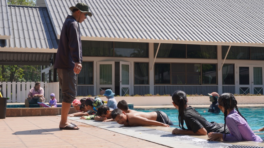 นอกจากนี้ ในวันที่ 24 มีนาคม 2569 ได้มีการดำเนินกิจกรรมฝึกสอนว่ายน้ำให้แก่เด็กและเยาวชน โดยครูจำนง สีสด และครูกุลริศา กรกีลานนท์ เพื่อเสริมสร้างทักษะพื้นฐานด้านการว่ายน้ำ ควบคู่กับการสร้างความตระหนักรู้ด้านความปลอดภัยทางน้ำ อันจะนำไปสู่การมีสุขภาวะที่ดีและสามารถดำรงชีวิตได้อย่างปลอดภัยต่อไป