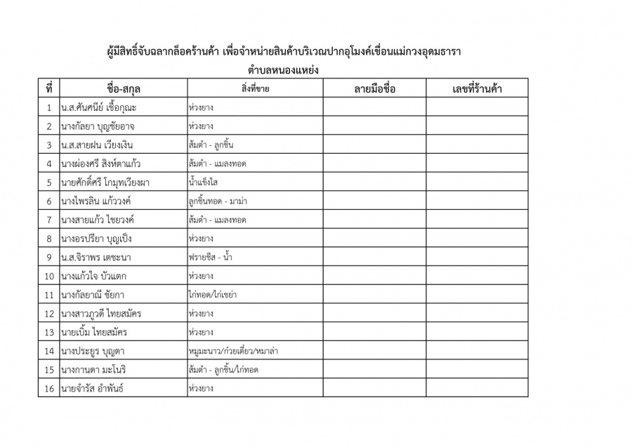 ***ประกาศรายชื่อผู้ผ่านการลงทะเบียนจำหน่ายสินค้าและมีสิทธิ์จับฉลากล็อคร้านค้าเทศบาลตำบลหนองแหย่ง